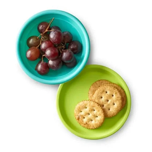 Disfruta de una comida más segura, limpia y versátil con el juego de tazones y platos de silicona GoSili: la mejora ecológica perfecta para bebés, niños pequeños y adultos. Fabricado con silicona 100 % de grado europeo y reforzado con un anillo de acero inoxidable, este innovador tazón mantiene su forma sin deformarse y es apto para microondas y lavavajillas.