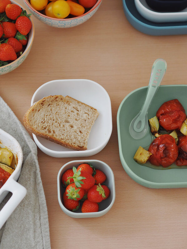 Para todos los tamaños y gustos, los cuencos nido de Béaba® están especialmente diseñados para acompañar a tu bebé en su fase de aprendizaje alimentario. Gracias a sus formas ergonómicas, ayudan al bebé a coger la comida fácilmente gracias a sus bordes altos y redondeados. Estos cuencos permiten ofrecer los alimentos por separado, lo que ayuda a conservar los sabores de cada alimento y separar texturas y sabores.