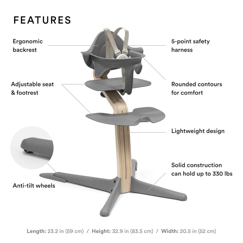 – La silla alta de Nomi está diseñada para niños de aproximadamente 6 a 24 meses