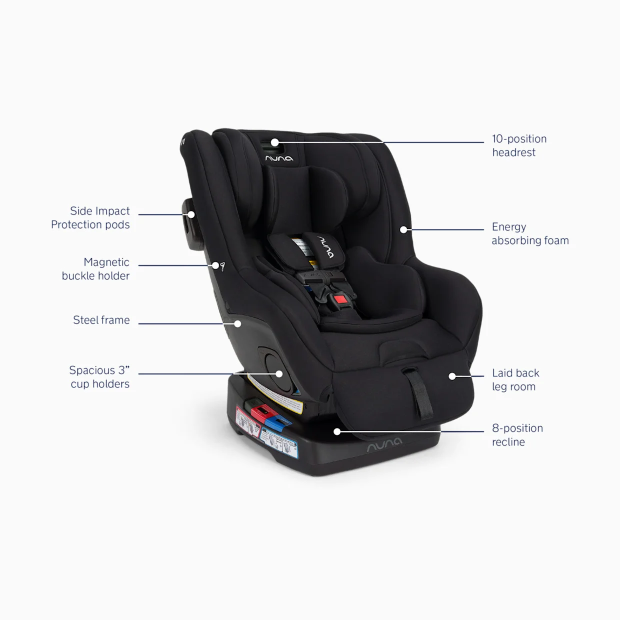 La silla Rava Next se puede instalar mirando hacia atrás con cinturón de seguridad desde 2,3 kg hasta 22,7 kg (con cinturón de anclaje inferior, de 2,3 kg a 15,9 cm de 45,7 cm a 124,7 cm) y mirando hacia adelante con cinturón de seguridad desde 13,6 kg hasta 29,5 kg (con cinturón de anclaje inferior, de 13,6 kg a 18,1 cm de 86,4 cm a 124,7 cm).