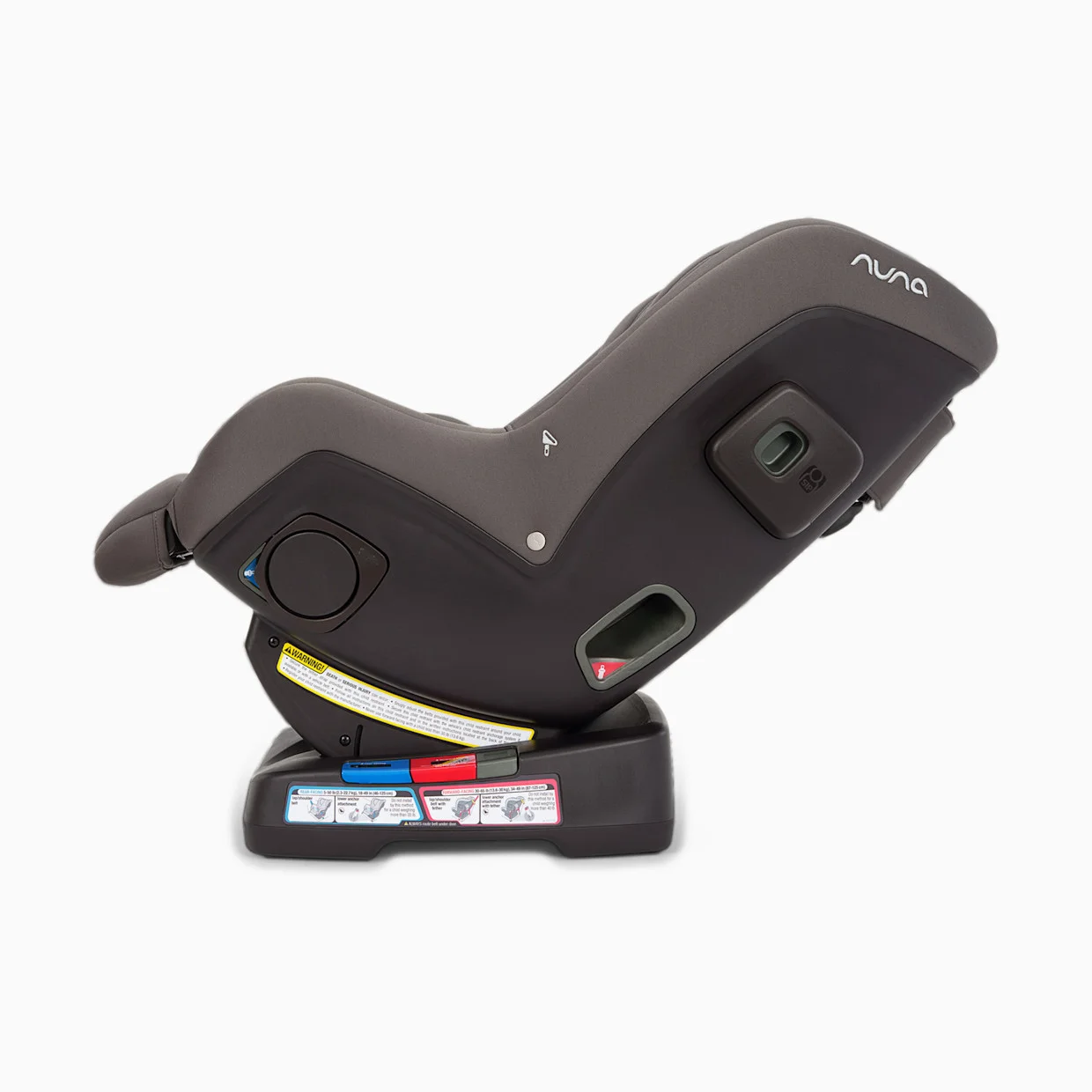 La silla Rava Next se puede instalar mirando hacia atrás con cinturón de seguridad desde 2,3 kg hasta 22,7 kg (con cinturón de anclaje inferior, de 2,3 kg a 15,9 cm de 45,7 cm a 124,7 cm) y mirando hacia adelante con cinturón de seguridad desde 13,6 kg hasta 29,5 kg (con cinturón de anclaje inferior, de 13,6 kg a 18,1 cm de 86,4 cm a 124,7 cm).